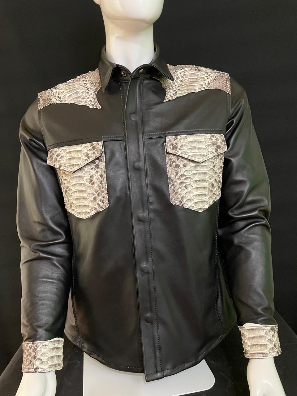 - Sobre camisa piel genuina con aplicaciones en piel exótica de pitón natural