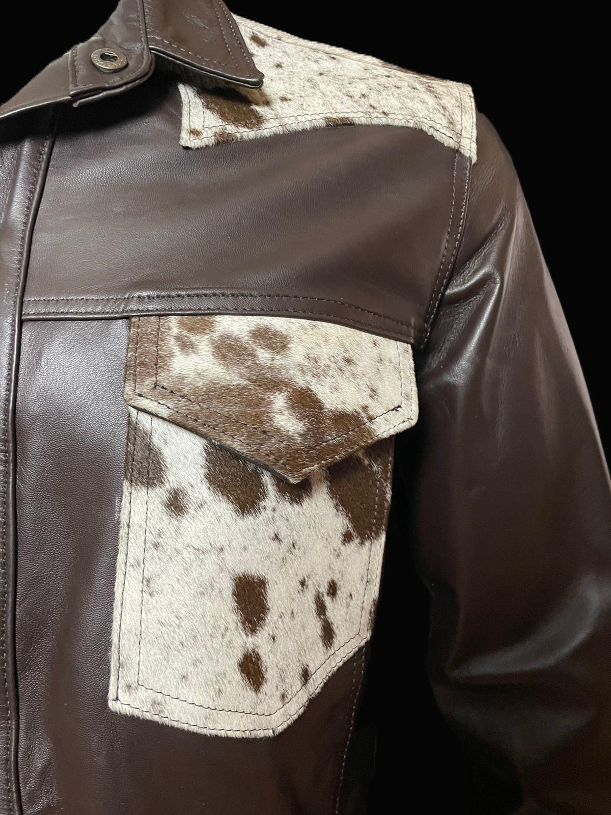 * SOBRECAMISA EN PIEL AUTENTICA DE BORREGO CON APLICACIONES EN PELO DE VACA REAL